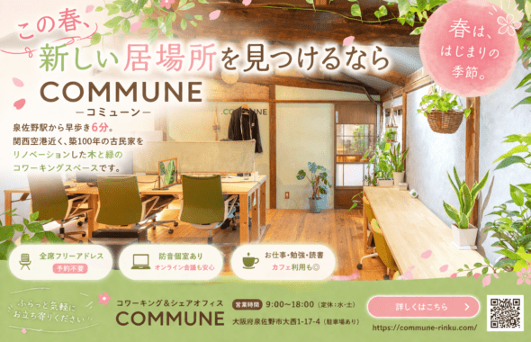 泉佐野で新しい居場所を探すならCOMMUNE|春の新生活・自習・テレワークに
