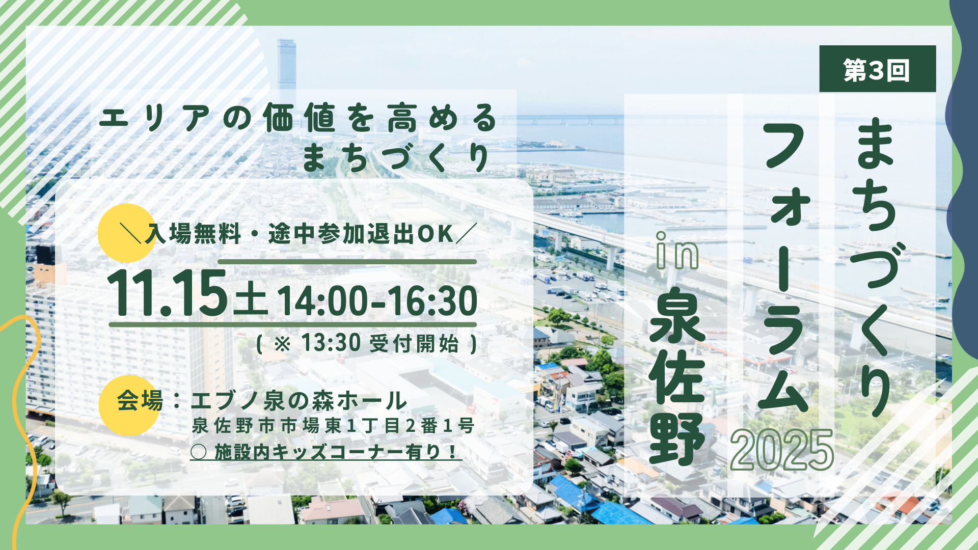 COMMUNE 代表の渡辺が企画運営に関わるイベント「第3回まちづくりフォーラム in 泉佐野」が11/15(土)に泉の森ホールで開催されます。