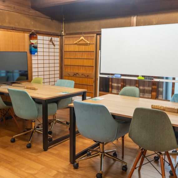 周囲に聞かれたくないWEB会議や面接などの際にご利用いただける個室になります。1F縁側・2F階段横にそれぞれ設置しており、どなたでもご利用いただけます。